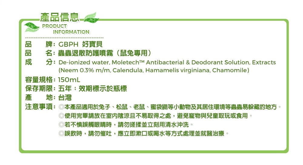 GBPH好寶貝蟲蟲退散防護噴霧專為鼠兔設計,