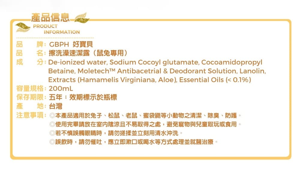GBPH好寶貝擦澡速潔露專為鼠兔設計,